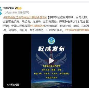 5月23号解放军东部战区宣布,当天上午7:45对台海的大规模联合演习正式拉开帷幕。海陆空火箭军四大军种齐上阵。海岛的东西南北4个方向均有演习,除此之外,包括金门,马祖在内的靠近大陆一侧的岛屿和相关海域也在演习范围之中。